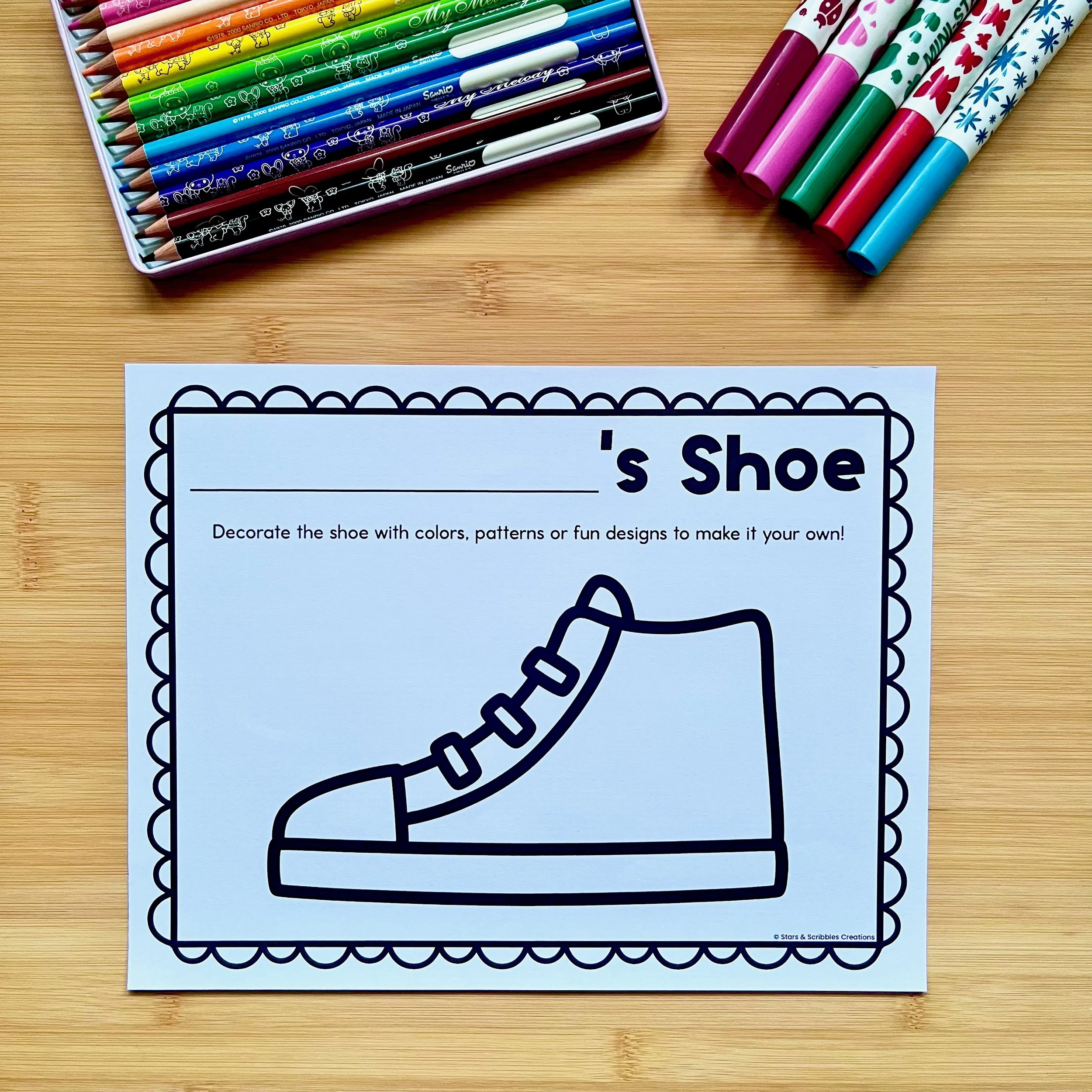 You’ll notice there are two shoe templates in the download, one is shown here and the other is a different style of shoe that I didn’t snap a photo of. I couldn’t decide between the two shoe templates so I included both! These pages can also be used to tie into Pete the Cat: Rocking in My School Shoes.